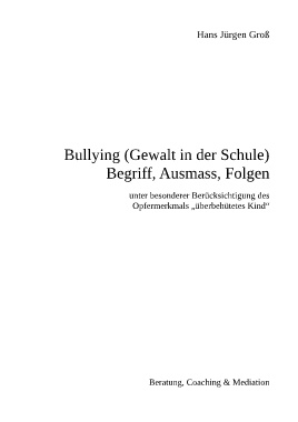Hans Jürgen Groß Bullying (Gewalt in der Schule) Begriff, Ausmass, Folgen unter besonderer Berücksichtigung des Opfermerkmals „überbehütetes Kind“ Beratung, Coaching & Mediation